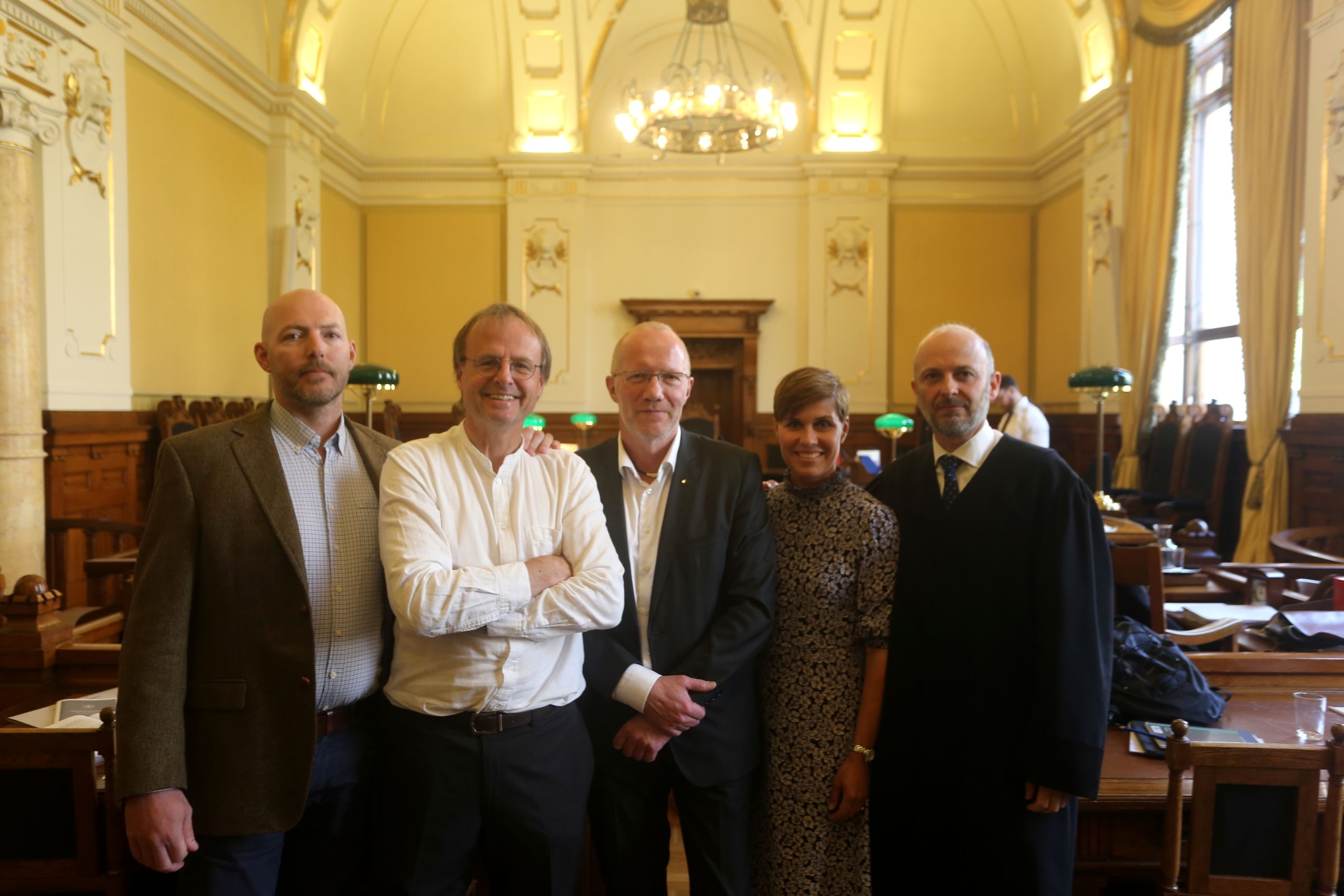 Her er Rettspraksis.no-teamet samlet i Høyesterett i saken mot Lovdata. Foto: Privat